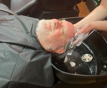 HAIRCUT/STYLE, BEARD TRIM, SHAMPOO AND SCALP MASSAGE, HOT TOWEL FACIAL